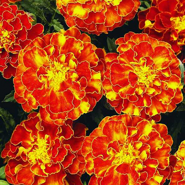 Замечательный сорт бархатцев от американской компании PanAmerican Seed. Неповторимая окраска создает эффект объемных, словно светящихся соцветий. Кусты высотой до 30 см, с отличным ветвлением. Соцветия густомахровые, диаметр 5-7 см. Сорт отлично подходит для оформления клумб, рабаток, бордюров. Великолепно смотрится в горшках и балконных контейнерах.