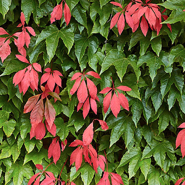 Ценная и самая популярная крупная вьющаяся лиана для вертикального озеленения, вырастает до 15-20 м высотой. Молодые побеги красноватые, позднее темно-зеленые, усики с 3-8 разветвлениями, оканчивающиеся овальными утолщениями. Листья сложные, пальчатые, состоящие из продолговатых, заостренных на верхушке листочков длиной до 10 см. Осенью они приобретают эффектную багряную или пурпуровую окраску. Цветки на тонких цветоножках, собраны в верхушечные зонтиковидные соцветия. Плод-синевато-черная ягода с сизоватым налетом. Растет очень быстро на любой почве, теневынослив, хорошо переносит условия города. Почти не повреждается насекомыми и грибными заболеваниями. Долговечен. Легко размножается семенами, черенками и отводками.Семена высевают осенью или весной после 2-4-месячной стратификации. Используется во всех видах вертикального озеленения.