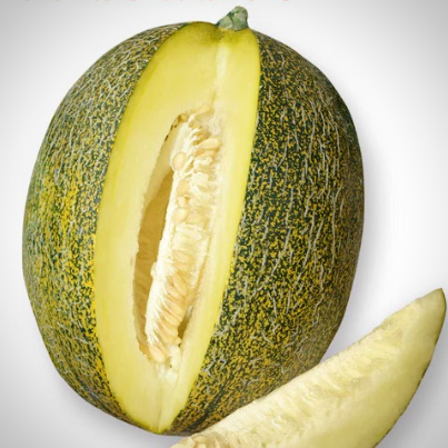 Шкурка темно-зеленая с небольшими бороздками. Вес плода 2,5-3 кг. Мякоть нежная, сочная, белоснежная.  Сахаристость 14-15 баллов. Отличная лежкость. Толерантность к транспортировке.