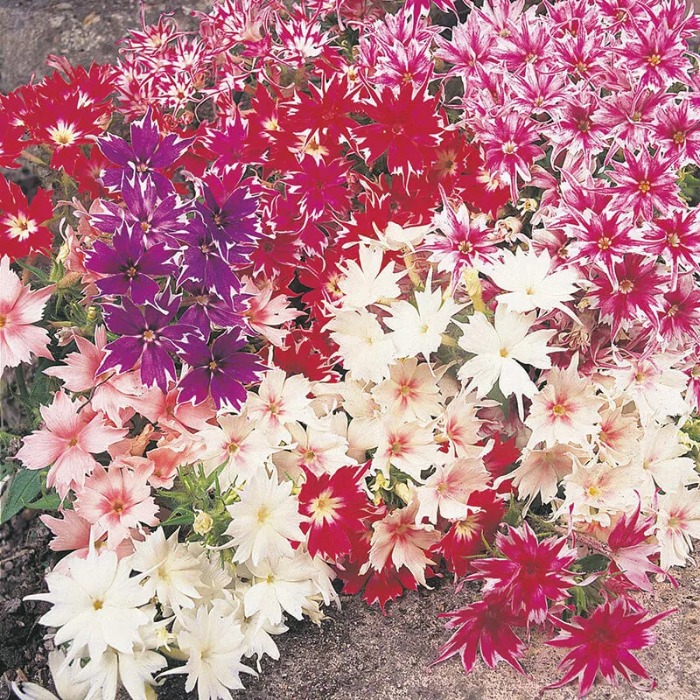 Звездообразные душистые цветы. Кустики компактные, низкие, 30 см высотой. Плотные яркие соцветия с остроконечными лепестками достигают в диаметре 10 см. Цветет обильно с июня до конца сентября. Используют для бордюров, обрамления клумб.