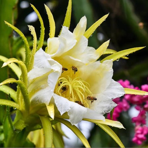 Крупный кактус, который может быть лазящим или стелющимся. Его высота может варьироваться от 3 до 15 м. В английском языке этот фрукт называют «драконий фрукт». Плод имеет красно-розовый цвет и белую мякоть. Он происходит из Мексики и Никарагуа. У этого кактуса толстая кожура с прицветниками. В средней полосе прастение выращивают в горшках в комнатных условиях, а летом выносят в тенистый сад. Плоды содержат мало калорий и богаты витамином С, фосфором, кальцием, клетчаткой и антиоксидантами. Рекомендуется есть их слегка охлаждёнными и не сочетать с блюдами с резким вкусом. Из питахайи делают сок, вино и используют для придания вкуса напиткам. Цветы этого кактуса также съедобны. При нагревании аромат плода утрачивается. Для приготовления его разрезают вертикально на две половинки, а затем либо разрезают на дольки, либо вычерпывают мякоть ложкой.