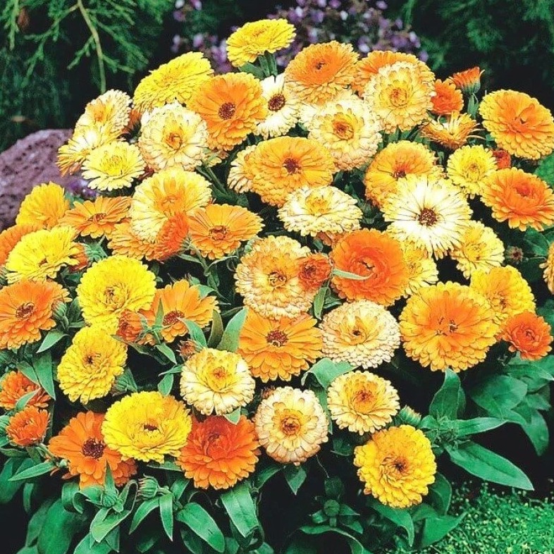 Однолетнее растение. Куст компактный густоветвистый, высотой 25 см. Соцветия махровые, крупные, диаметром до 5-7 см. Оттенки: кремовый, оранжевый, абрикосовый, золотой. Цветет с июня по сентябрь.