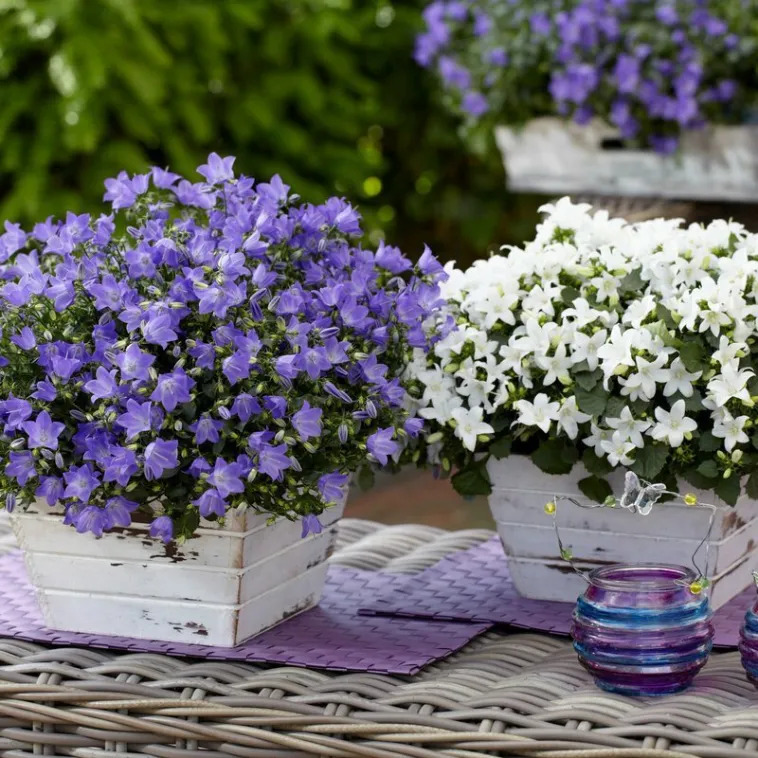 Уход: обильный полив, прополка, рыхление. Весной вносят азотную подкормку, а с началом цветения — комплексные минеральные удобрения. После обильного летнего цветения, примерно в октябре, наступает фаза покоя. Для этого комнатным колокольчикам необходимо снизить температуру до 14-16°С и сократить полив до 1-2 раз в месяц, не допуская пересыхания земляного кома.