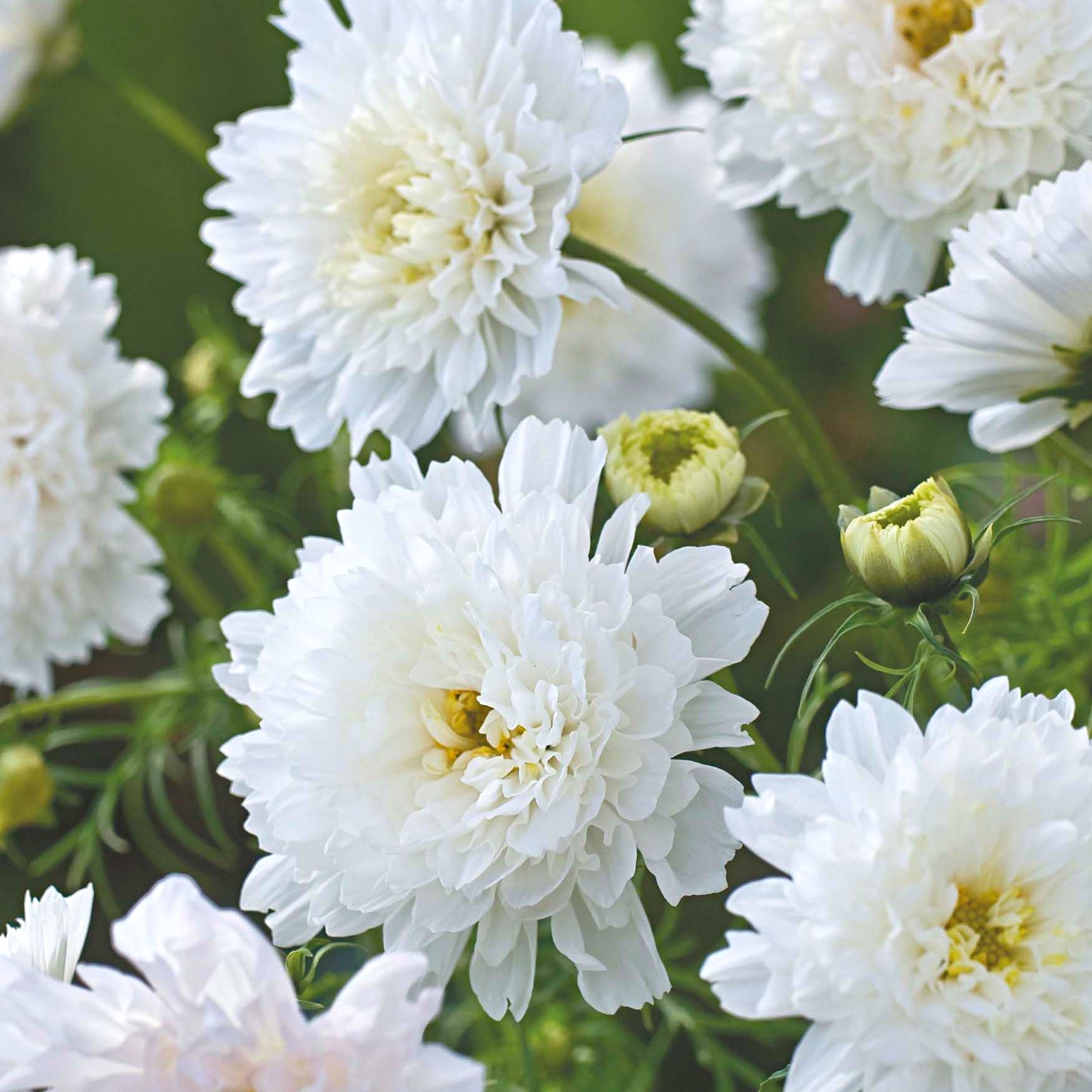 Цветущие побеги космеи прекрасно смотрятся в вазах. Те, кому нравится пышное, интенсивное цветение, оценили космею очень давно. Её хорошо сажать на заднем плане цветников и бордюров. Фон, образуемый мелко рассеченными перистыми листьями и многочисленными соцветиями, выглядит очень привлекательно. Отлично будет смотреться космея и как солирующее растение на газонах.