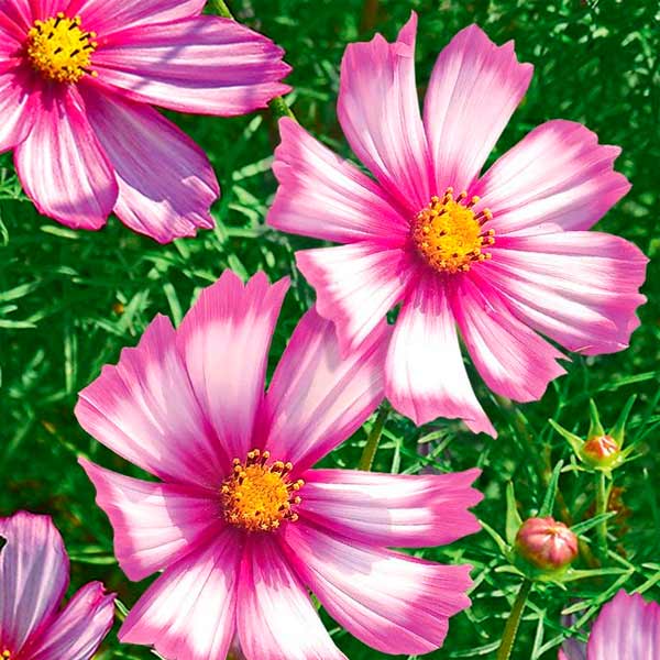 Один из самых высоких и красивых сортов! Высокий куст с кружевной листвой подарит десятки белоснежных цветков с нежной розово-пурпурной растушевкой по краям лепестков. Замечательно смотрится в массовых посадках в палисаднике и патио, а высокие цветочные бордюры выглядят несравненно легко и воздушно!