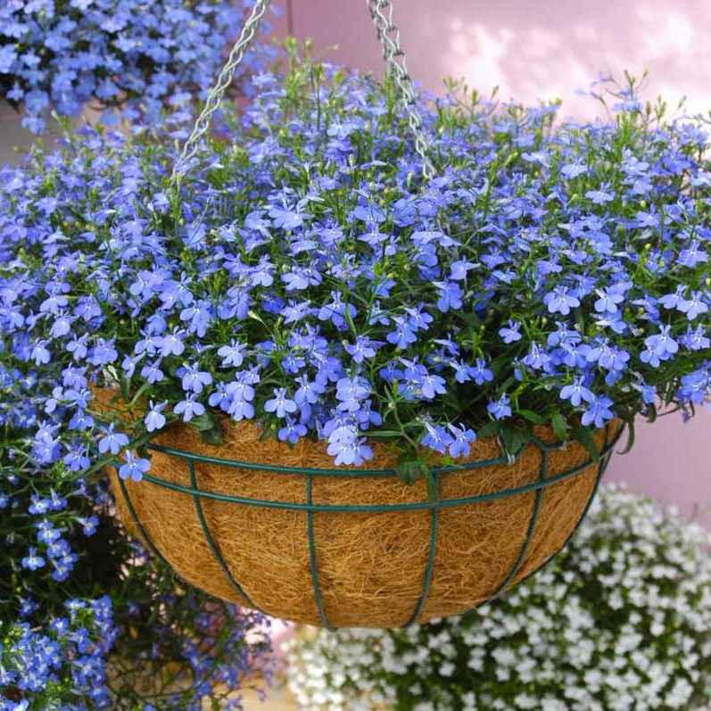 Идеальный сорт для подвесных корзин и контейнеров. Многолетнее растение, используемое как однолетнее. Красивое травянистое растение со свисающими побегами (длиной до 30 см), усыпано голубыми цветками. Листья зеленые. Цветет с июня по сентябрь.