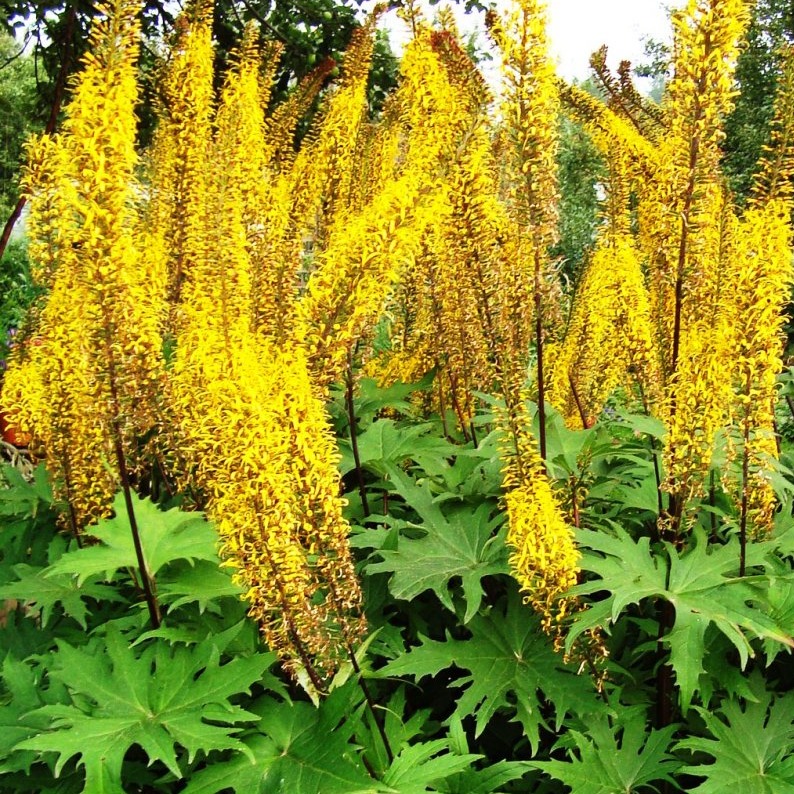 Очень крупное, доминантное в саду многолетнее растение. Яркое растение с огромными колосовидными соцветиями и красиво рассеченными зелеными листьями. Растения высотой 1,5-2,0 м, диаметром 0,5-0,7 м.