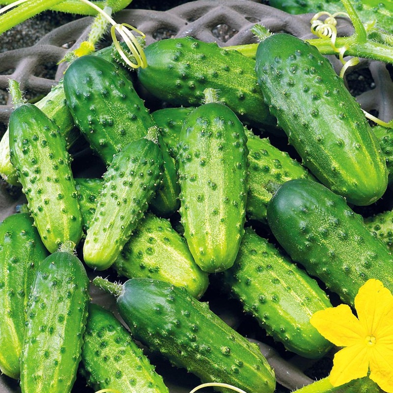 • Плоды цилиндрические, зеленые, со среднедлинными и длинными полосами, среднебугорчатые, на поперечном разрезе округлые, опушение белое.