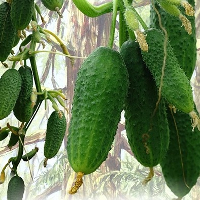 Среднеранний - 55-60 дней от посева до первых сборов в зимних теплицах, 40-45 дней в весенне-летний оборот, партенокарпический (не требует опыления) гибрид. Завязь букетная - в каждой пазухе 5-6 завязей. Плод короткий - длиной 10-12 см, цилиндрической формы, крупнобугорчатый, расположение бугорков частое, шипы белого цвета. Консистенция мякоти плотная, хрустящая. Обладает хорошей транспортабельностью, после сбора долго не вянет. Пригоден для засолки и консервирования. Толерантен к мучнистой росе и аскохитозу.