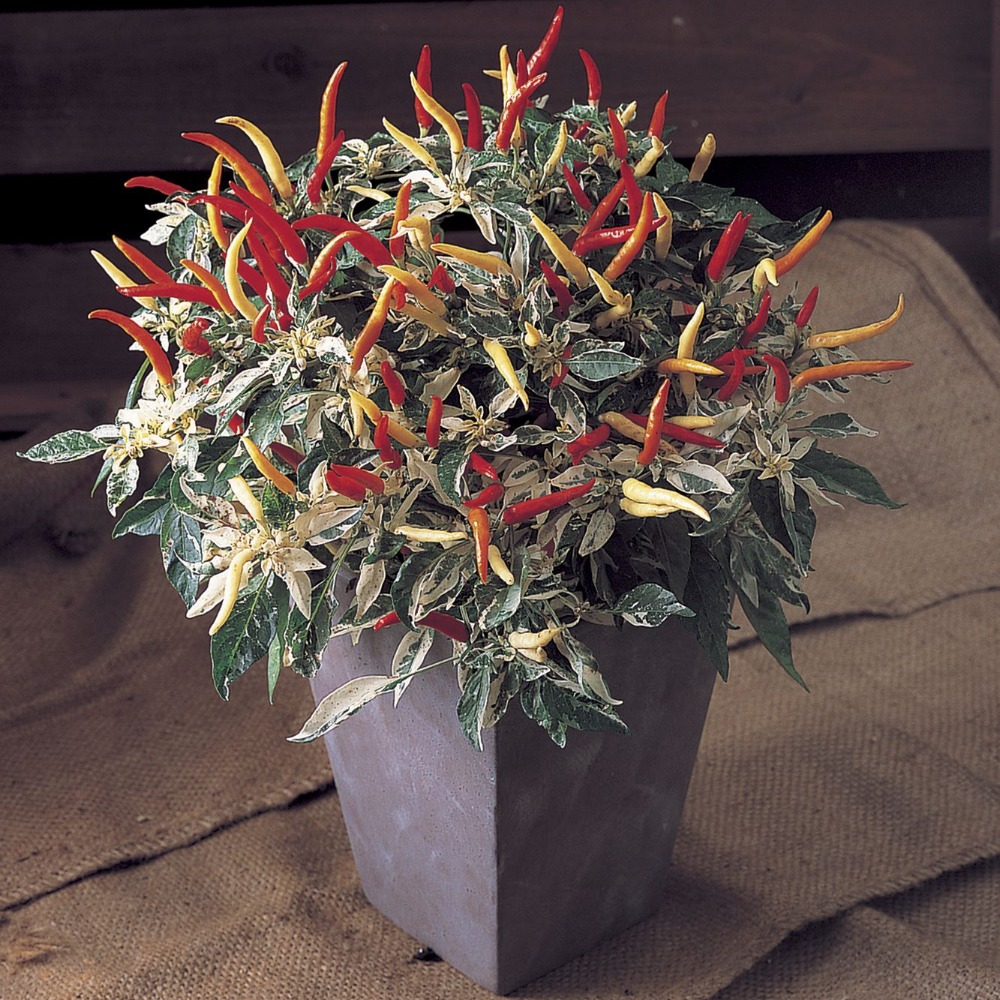 Привлекателен не только желто-красными огоньками созревших плодов, но и пестрой вариегатной листвой. Вытянутые узкие перчики, торчащие вверх, напоминают рождественские свечи. Специально предназначен для выращивания в горшках, украсит собой подоконник, балконные ящики, веранды и патио. Съедобный!