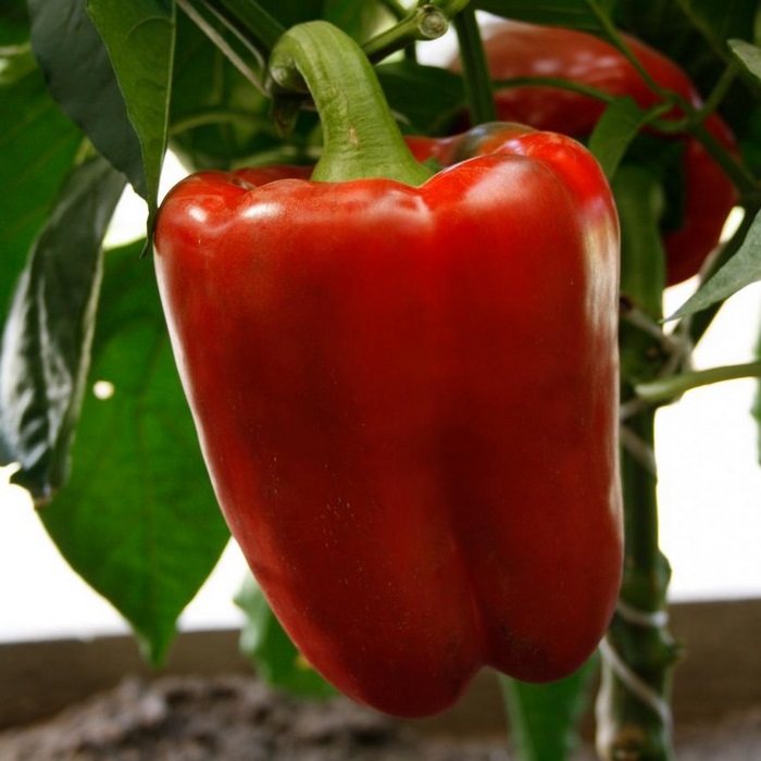 Среднеспелый (120-130 дней) гибрид для выращивания в открытом и защищенном грунте. Растение полураскидистое, высотой 80-90 см. Плоды крупные, кубовидно-призмовидные, в технической спелости зеленые, в биологической – ярко-красные, длиной 18-20 см, массой 350-400 г, сочные, сладкие. Толщина стенки до 1 см. Урожайность 8-8,5 кг/м².
