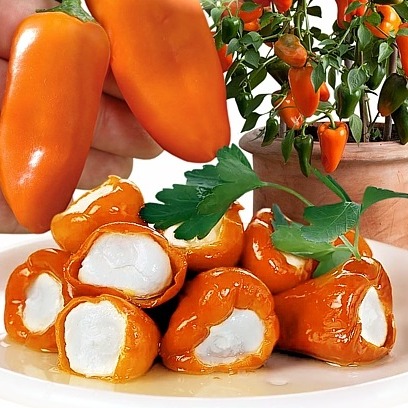 Содержат всего несколько семян, сосредоточенных у основания, что очень удобно при поедании перчика целиком и для фаршировки сливочным сыром. Мини паприка прекрасно растет не только в теплице, но и на окне в горшках. Яркие оранжевые плоды на компактном темно-зеленом растении прекрасно украсят дом даже в зимний период.