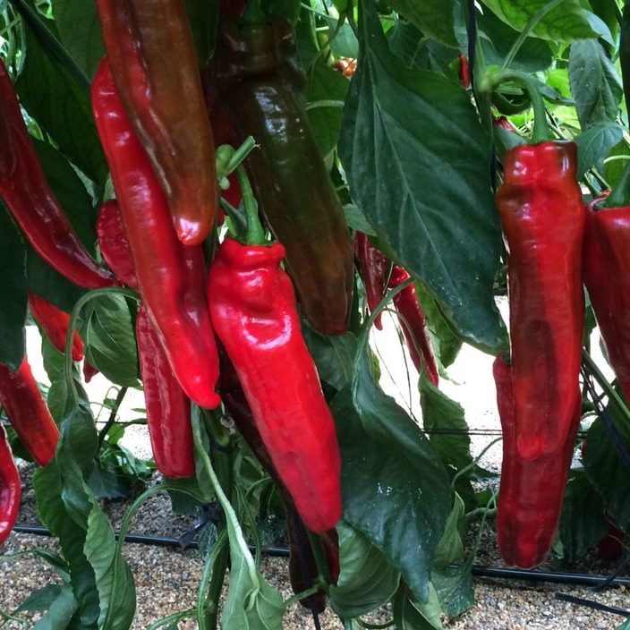 Итальянский тип красного сладкого перца с длинными конусовидными плодами для выращивания в плёночных и остеклённых теплицах. Плод в технической спелости зелёный, в биологической- красный, длина 15-25 см (до 30 см), толщина у основания 5-6 см. Первые плоды длиннее, потом - более короткие и выровненные. Высокоурожайный гибрид благодаря хорошей завязываемости даже при недостатке освещённости.