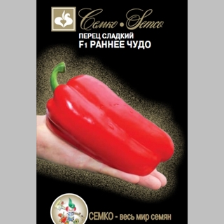 Перец Раннее Чудо F1 - ранний крупноплодный гибрид для стеклянных и пленочных теплиц. От всходов до технической спелости 90–95 дней, до биологической 110–115 дней. Растение мощное, компактное, индетерминантное, высотой до 1,2 м. Перцы призмовидной формы, плотные, глянцевые, длиной 14–16 см, в диаметре 8–10 см, в технической спелости зеленые, в биологической – темно-красные, плотные, массой 240–260 г, толщина стенки 9–10 мм. Гибрид легко адаптируется к различным условиям выращивания, стрессоустойчив, хорошо переносит высокие температуры. Вкус отличный, товарность высокая.