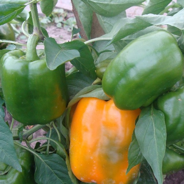 Раннеспелый (107-112 дней) высокоурожайный гибрид для открытого и защищенного грунта. Растение мощное, полураскидистое, высотой 60-80 см. Плоды пониклые, крупные, кубовидные, в технической спелости зеленые, в биологической – ярко-оранжевые, массой 140-160 (до 250) г, толщина стенки 8-10 мм, очень сочного вкуса. Урожайность 7,5-8 кг/м². Ценность гибрида: устойчивость к комплексу болезней, крупноплодность, великолепные вкусовые и товарные качества плодов, хорошая транспортабельность. Рекомендуется для употребления в свежем виде и для всех видов кулинарной переработки.