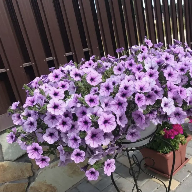Гибриды из серии F1 «Волна» (Easy wave) получили признание и любовь у профессионалов и любителей по всему миру. Самая неприхотливая из петуний с каскадной формой куста, прекрасно растет даже в условиях короткого дня, что значительно упрощает выращивание рассады в зимние месяцы (январь, февраль) и сдвигает сроки цветения на более ранние. Даже в неблагоприятных условиях растения развиваются равномерно, это делает их незаменимыми для создания смесей нескольких оттенков, цветочных композиций с другими декоративными культурами уже на стадии ранних всходов. Во взрослом состоянии гибриды превосходят все известные каскадные формы, включая «сурфинию» по многим параметрам. Одно растение формирует множество, крупных цветков диаметром 5-7 см. Габитус растений зависит от плотности посадки. При высадке на расстоянии 30 см, растут, в основном, вверх, образуя живую изгородь высотой 30 см. Высаженные на расстоянии 60 см, разрастаются как почвопокровные во всех направлениях на площади 1,0 м². Но эффектнее всего выглядят растения в подвесных корзинах и балконных ящиках, где мощные многочисленные побеги длиной 0,75-1,0 м, свисая, образуют грандиозный цветущий водопад.