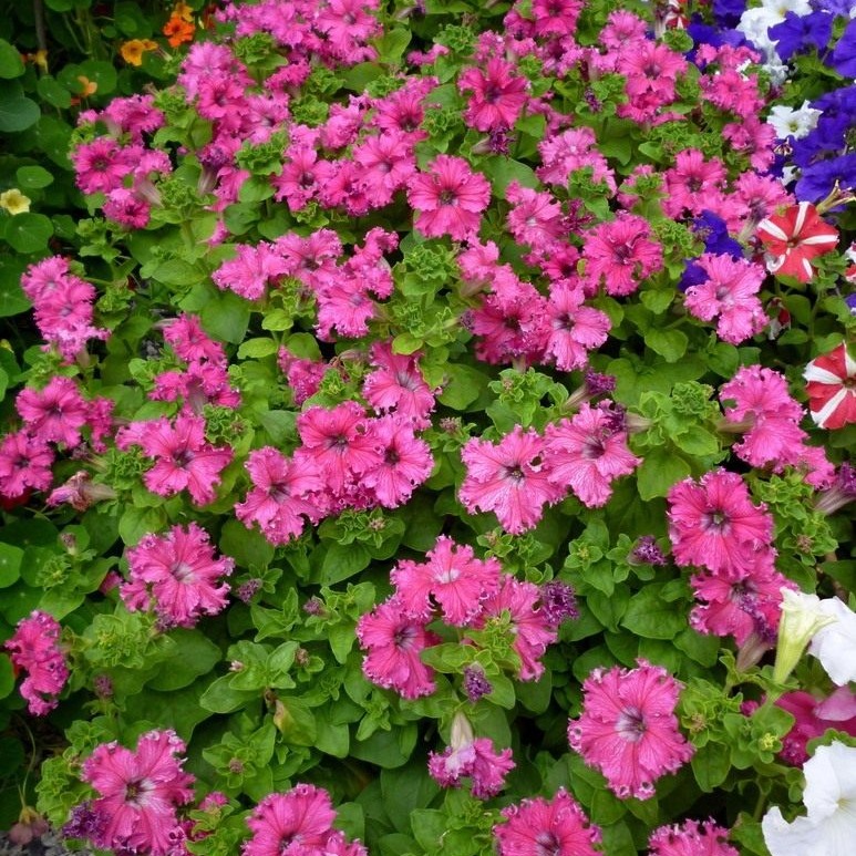 Ослепительная серия бахромчатых петуний. Сильно гофрированные края цветка создают впечатление кринолина, а летом, при обильном цветении, сад будет похож на бал первых красавиц. Растение образует шаровидный куст высотой 30 см и диаметром 35 см. Цветки крупные, розовые, диаметром 10-12 см.