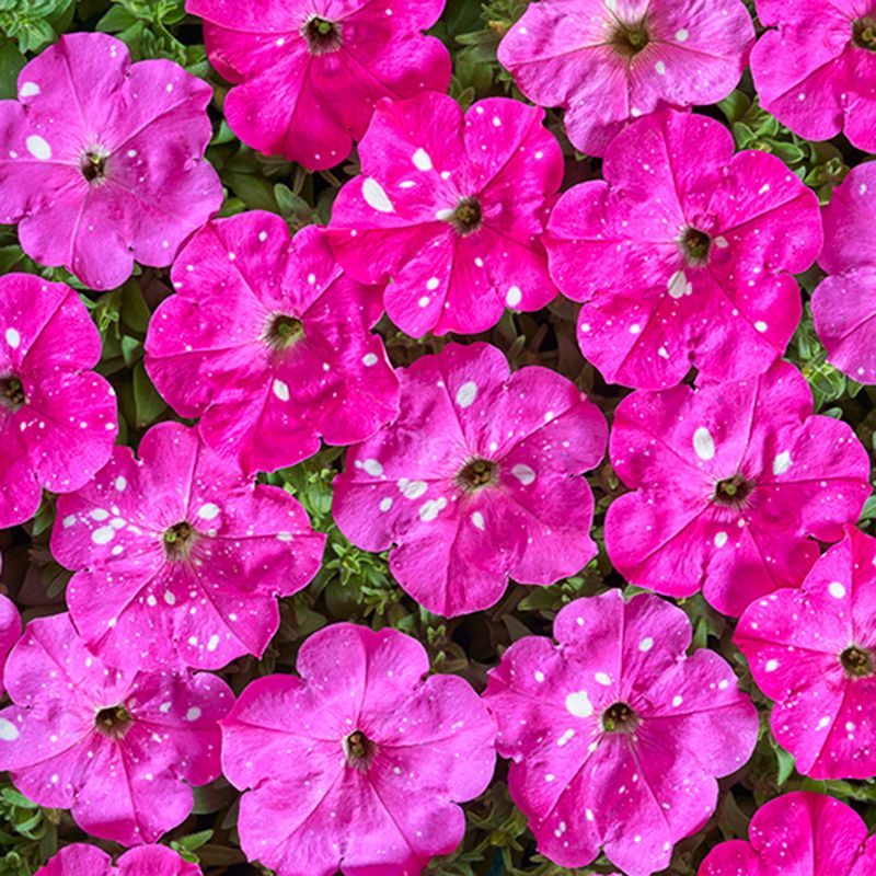 Впервые на рынке из семян! Эксклюзивная новинка чешской селекции – одна из самых популярных расцветок. Неповторимая серия гибридов «Дот Стар» представлена многоцветковой петунией с потрясающим, контрастным рисунком лепестков, повторяющим звездное небо. Каждый цветок индивидуален: форма и количество белых вкраплений меняется в зависимости от погодных условий. Растения высотой 30-35 см. Активно растут и развиваются, формируя симпатичные, плотные кустики с большим количеством цветков Ø 6-7 см. Яркая петуния украсит любую клумбу, вазон, подвесное кашпо, став изюминкой вашего сада!