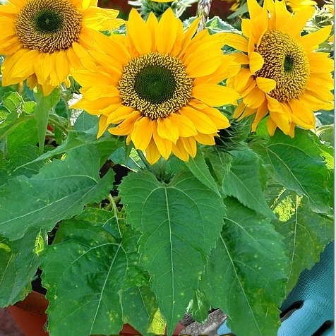 Настоящий карликовый гибрид подсолнуха. Специальная селекция для выращивания в горшках небольшого объема. Растение компактное, с очень короткими междоузлиями на толстом стебле высотой 20-25 см. Характерная особенность гибрида – почти одновременное зацветание боковых второстепенных побегов вместе с основным. Получается очень насыщенное и богатое цветение. Диаметр соцветия 15-16 см. Лепестки периферийных цветков ярко-желтые, центр светлый, золотисто-шоколадный. Эффектное сочетание короны из ярко желтых лепестков и светлого карамельно-шоколадного центра. Холодостойкое, прекрасно переносит весенние перепады температур и осенние холода. Для получения компактного растения необходимо использовать горшки объемом не более 5 литров. Возможно выращивание без рассады, прямым посевом семян в горшок.