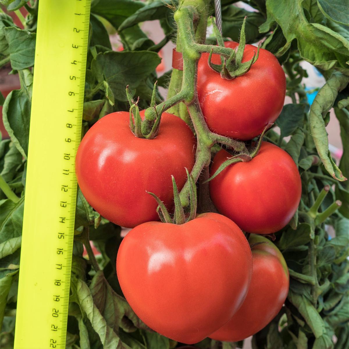 Гибрид раннеспелый, индетерминантный. От всходов до первого сбора урожая 95-105 дней. Первое соцветие закладывается над 9 листом, последующие через 3. Кисти имеют полу сложную форму с 5-7 плодами, массой около 180 г. Плоды яйцевидной формы с небольшой оттяжкой и заострением вершины, 3-4 камерные. Растения формировать в 2-3 стебля. Особенностью данного гибрида является обязательный своевременный сбор созревших плодов, что приближает окончательный сбор урожая и повышает общую урожайность. Плоды  биологической спелости имеют густо-красную окраску, как снаружи, так и внутри. Вкусовые качества отличные, как в свежем, так и в консервированном виде. Консистенция томата очень приятная, нежная.