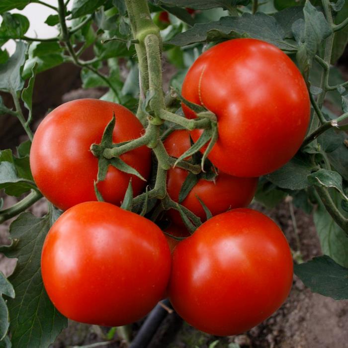 Среднеспелый (110-115 дней) гибрид для теплиц и пленочных укрытий. Растение индетерминантное, высокорослое, высотой 2-2,5 м, среднеоблиственное. В кисти формируется 5-6 плодов. Плоды округлые, крупные, плотные, незрелые – светло-зеленые, зрелые – ярко-красные, глянцевые, массой 250-350 г. Мякоть сочная, мясистая, красная. Плоды высокого качества, не растрескиваются, долго сохраняют товарный вид, что позволяет перевозить их на дальние расстояния и хранить в течение нескольких месяцев.