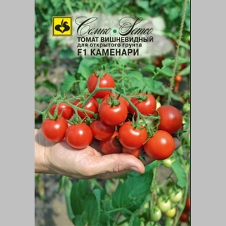 Томат Каменари F1 - ранний, детерминантный, от всходов до созревания плодов 90–95 дней. Растение компактное, сильное, хорошо облиственное. Первое соцветие формируется над 6 листом. Помидоры округлой формы, красные, двухкамерные, массой 18–20 граммов, плотные, устойчивы к растрескиванию, лежкие и обладают высокой товарностью. На одной кисти созревает в среднем 8–12 плодов. Вкусовые качества свежих и консервированных томатов отличные. Томат Каменари F1 устойчив к вертициллезному (Va, Vd) и фузариозному увяданию (Fol 1–2). Используется для свежего потребления и цельноплодного консервирования.