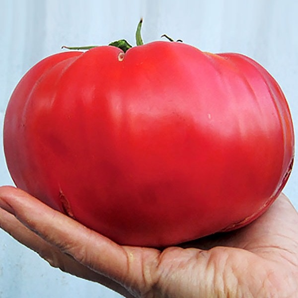 Пасынки не запускайте, обрывайте, как только можно ухватить пальцами. Не увлекайтесь подкормками. Они "гонят" зелёную массу, а вам нужны плоды. Конечно, лучше высаживать в защищённый грунт, но в южных регионах можно на опоре разместить в открытом грунте. Растение малооблиственное, в норме высотой см 170. Можно получить плоды больше 1 кг (у нас был однажды 1750 г, но никто себе голову не морочил с отщипыванием цветков, просто повезло с погодой), 700-800г - это часто можно встретить. Плод плоскоокруглый, если было долго холодно, он может быть не очень правильной формы. Розово-малиновые, малосемянные, сочные с сахаристой мякотью и великолепным ароматом. Очень вкусные для салатиков и любых домашних заготовок. Умелые хозяйки даже режут на части и консервируют. Содержание провитамина «А» в 2-3 раза больше, чем в красноплодных томатах.