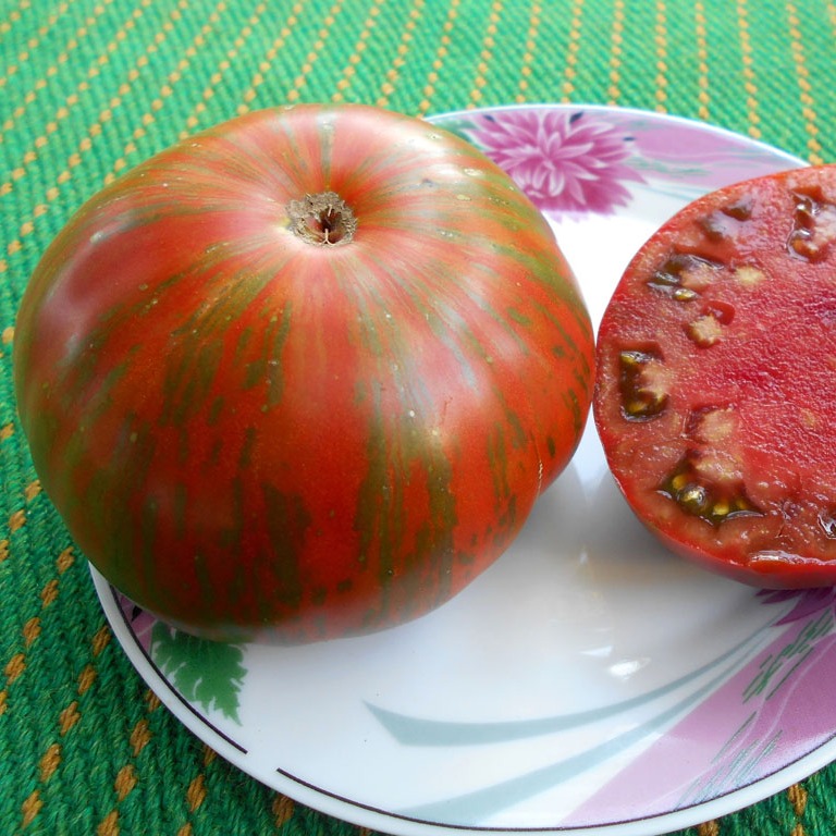Сорт очень нравится мужчинам, так как имеет деликатесный вкус, в меру сладкий, с чуть заметной кислинкой, бесподобен в салатах. Женщины же в восторге от коричнево-красной окраски с оливково-зелеными полосами!
