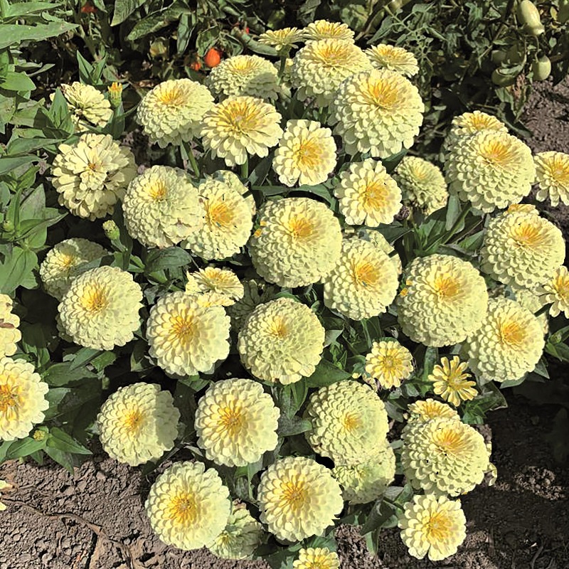 Цинния – красиво цветущее растение, образующее отдельный род семейства Астровые, получившее свое название по фамилии немецкого фармацевта Иоганна Цинна, он привез его из Мексики и впервые составил гербарий из него. До середины ХХ столетия майоры были символом Индианы – одного из американских штатов. В настоящее же время ее выращивают на всех материках. Цинния, пожалуй, самая популярная культура среди садоводов любителей.«Розетта» - карликовая цинния, пригодная для выращивания в помещениях, на балконах, во всех цветниках открытого грунта, но наиболее привлекательна она в вазонах, контейнерах и напольных вазонах. Компактные кустики формируют многочисленные цветы бело-кремового цвета. Красивые соцветия, состоящие из сгруппированных язычковых лепестков, охотно посещаются бабочками, они займут достойное место в самых изысканных композициях.