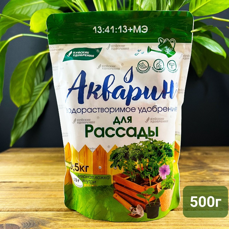 Акварин для рассады - водорастворимое удобрение, в состав которого входит азот, фосфор, калий, магний, сера и микроэлементы – железо, цинк, марганец, медь в хелатной форме, а бор и молибден – в минеральной. Благодаря кислой реакции (рН) удобрения, оно легко растворяется в холодной воде и более эффективно усваивается корневой системой или листовой поверхностью растений.