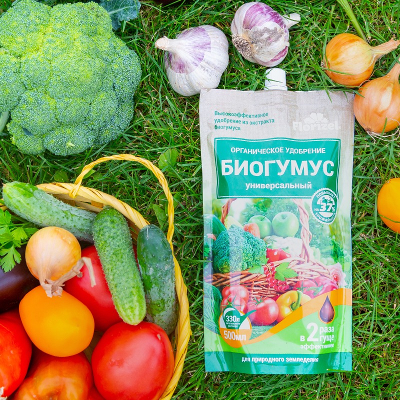 Биогумус Универсальное - гелеобразное органическое удобрение, изготовленное на основе экстракта биогумуса, с быстрым эффектом применения и длительным действием. В составе удобрения уникально сочетаются природные гуминовые и фульвокислоты, почвенные бактерии, фитогормоны и другие биологически активные вещества, макро- и микроэлементы. Все действующие вещества удобрения находятся в составе легкодоступных для растений органических комплексов.