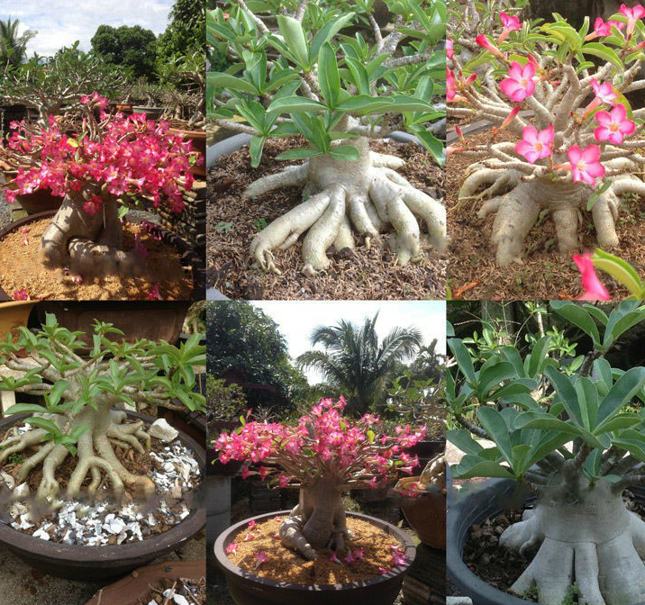 Агротехника. Получить растение, пригодное к формированию в стиле бонсай, позволяет только семенное размножение. Перед посадкой не будет лишним провести дезинфекцию семян адениума. В среднем время всхода растения составляет 21 день. Этот процесс возможно ускорить с помощью циркона. Следует растворить его в теплой воде и поместить в неё семена на 2-4 часа. Грунт для посадки: Для этого необходимо смешать вермикулит и торф (2:1), добавив древесный уголь (около 10%). Посев происходит на увлажненной почве. Семечко следует положить на землю, но не углублять его. Далее требуется закрыть пищевой пленкой и убрать в теплое место (24-28 градусов). Необходимо пресечь попадание прямого солнечного света на посаженные семена. Также крайне не рекомендуется наличие сквозняков и низкой температуры.