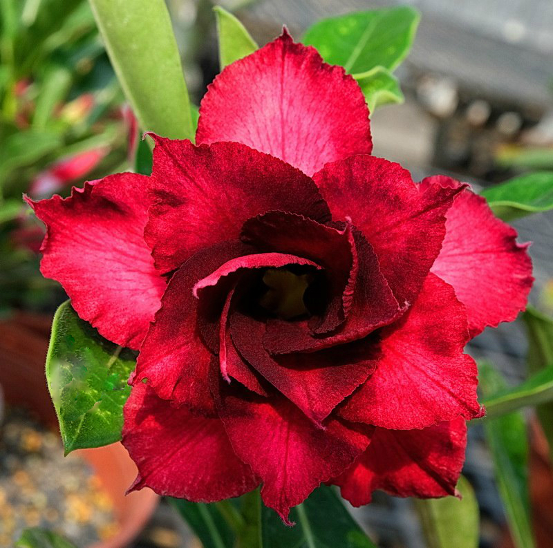 Адениум обесум относится к долгожителям. У нас выращивается как комнатное. Фантастический по красоте цветок. Цветет Адениум в основном с весны по осень. При соблюдении оптимальных условий выращивания может цвести почти круглогодично. Существуют экземпляры, возраст которых насчитывается более 75 лет. По утверждению разводчиков, эти растения способны жить до 200 лет, переходя из поколения к поколению.