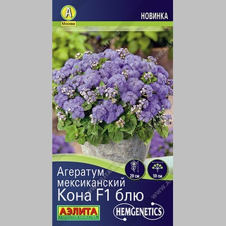 Суперкомпактный однолетний агератум от голландской компании Hem Genetics с генетически обусловленной карликовостью побегов. При контейнерном выращивании высота растения не превышает 10 см, в открытом грунте – 20 см. Ароматные пушистые соцветия диаметром 7-10 см украшают кустики до заморозков. Цветение раннее и обильное. Кустики агератума образуют плотный ковер из многочисленных соцветий и прекрасно смотрятся в цветочных композициях с другими растениями. Обладают высокой устойчивостью к неблагоприятным погодным условиям. Подходят для контейнерной и горшечной культуры.