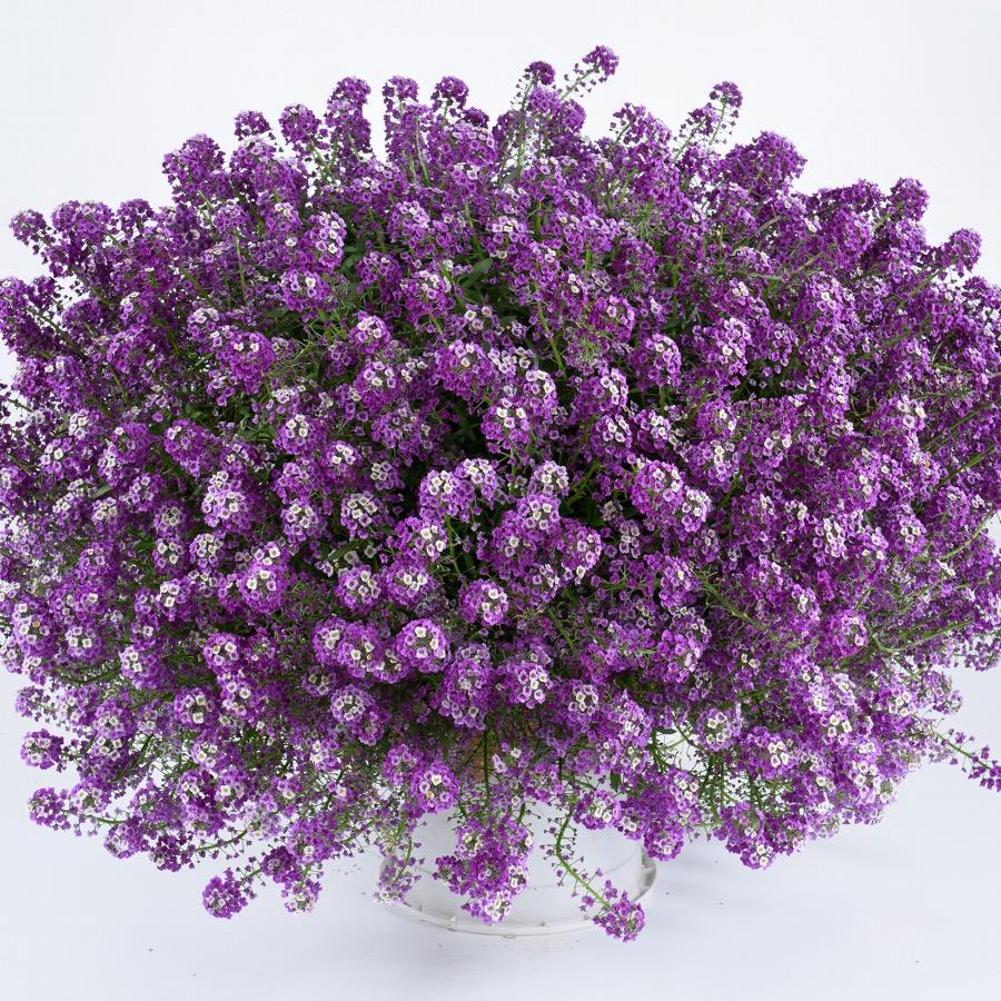 Алиссум (Лобулярия) – род растений семейства Капустные, произрастающих на побережье Средиземного моря и на Канарских островах. Этот вид с характерными свисающими побегами, которые можно обрезать и формировать, имеет множество сортов с ампельной формой, отлично подходящих для клумб, каменистых садов, выращивания в горшках на балконе, террасе. Он пахнет медом и пышно цветет весь летний сезон, стойко переносит засуху, хорошо смотрится на клумбах и альпинариях в качестве обрамляющей полоски. Часто его высаживают на бордюрах. С алиссумом гармонично сочетается обриета, резуха, флоксы и другие низкорослые стелющиеся растения, он не боится холодов.