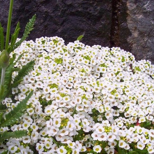Нежный аромат. Миниатюрное растение с мелкими цветками с медовым запахом. Растение невысокое, до 5-10 см. Образует плотный, стелющийся ковёр белого цвета. Листья узкие, ланцетные. Цветет с июня до осени. Для непрерывного цветения периодически удаляют увядшие цветы и плоды (если не нужны семена). Используют для обрамления клумб, балконных ящиков, на каменистых горках, рокариях, для посадки между плитками дорожек.