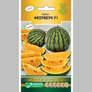«Феерверк» - раннеспелый гибрид арбуза, с момента раскрытия семядолей до сбора товарных плодов проходит 75-80 дней. Растение компактное, длина главного побега около 1,5 м, рекомендуется формировка в 2 плети. На плети завязывается 1-2 плода массой 2,5-4,0 кг. Плоды округлой формы, гладкие, кора светло-зеленая с размытыми ажурными темно-зелеными полосами. Мякоть плода насыщенно-желтого цвета, приятной нежной консистенции, с повышенным содержанием сахаров и каротина. Вкусовые качества арбузов превосходные. Гибрид устойчив к антракнозу, толерантен к фузариозному увяданию и к стрессовым абиотическим факторам.
