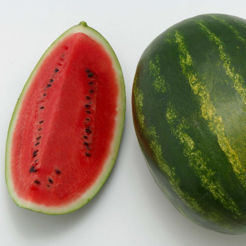 Гибрид Кримсон Руби относится к высокопродуктивным. Урожайность составляет от 4 до 5 кг/м2. Плоды – овальные, крупные, вес одного – 11-14 кг. Кожица полосатая, упругая хорошо защищает от повреждений. Мякоть красная, без прожилок, сахарная, содержит семечки. Но в силу того, что Кримсон Руби – это гибрид, семена не подходят для сбора с целью последующего посева. Вкусовые свойства – отменные. Использовать плоды можно не только для употребления свежими, но также они подходят для маринования, приготовления десертов.