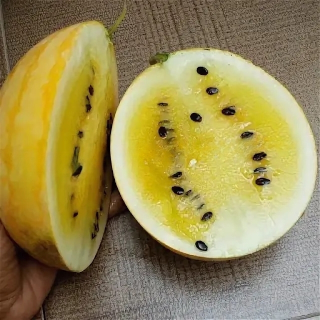 Среднеспелый (80 дней от всходов до начала созревания) урожайный сорт. Растение среднеплетистое. Плоды округлые, ярко желтые с ярко-оранжевыми шиповатыми полосами. Масса 4-7 кг. Кора средней толщины. Мякоть желтого цвета, плотная, зернистая. Очень нежного и сладкого экзотического вкуса. Содержание сахара до 11,0%. Семена темно-коричневые. На одном растении формируется по 2-3 плода. Предназначен для выращивания в пленочных укрытиях, теплицах и открытом грунте (южные регионы). Транспортабельность плодов высокая.