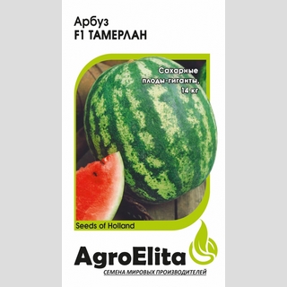 Высокоурожайный среднепоздний гибрид арбуза для теплиц, пленочных укрытий и открытого грунта (в южных регионах). Растение мощное, хорошо облиственное. Плоды очень крупные (средняя масса 14 кг), округлые, с высоким содержанием сахаров и превосходными вкусовыми качествами. Мякоть плотная, без пустот, ярко-красная, сочная, сладкая. Кора средняя, с расплывчатыми зелеными полосами на светло-зеленом фоне. Гибрид отлично транспортируется и обладает прекрасной лежкостью.