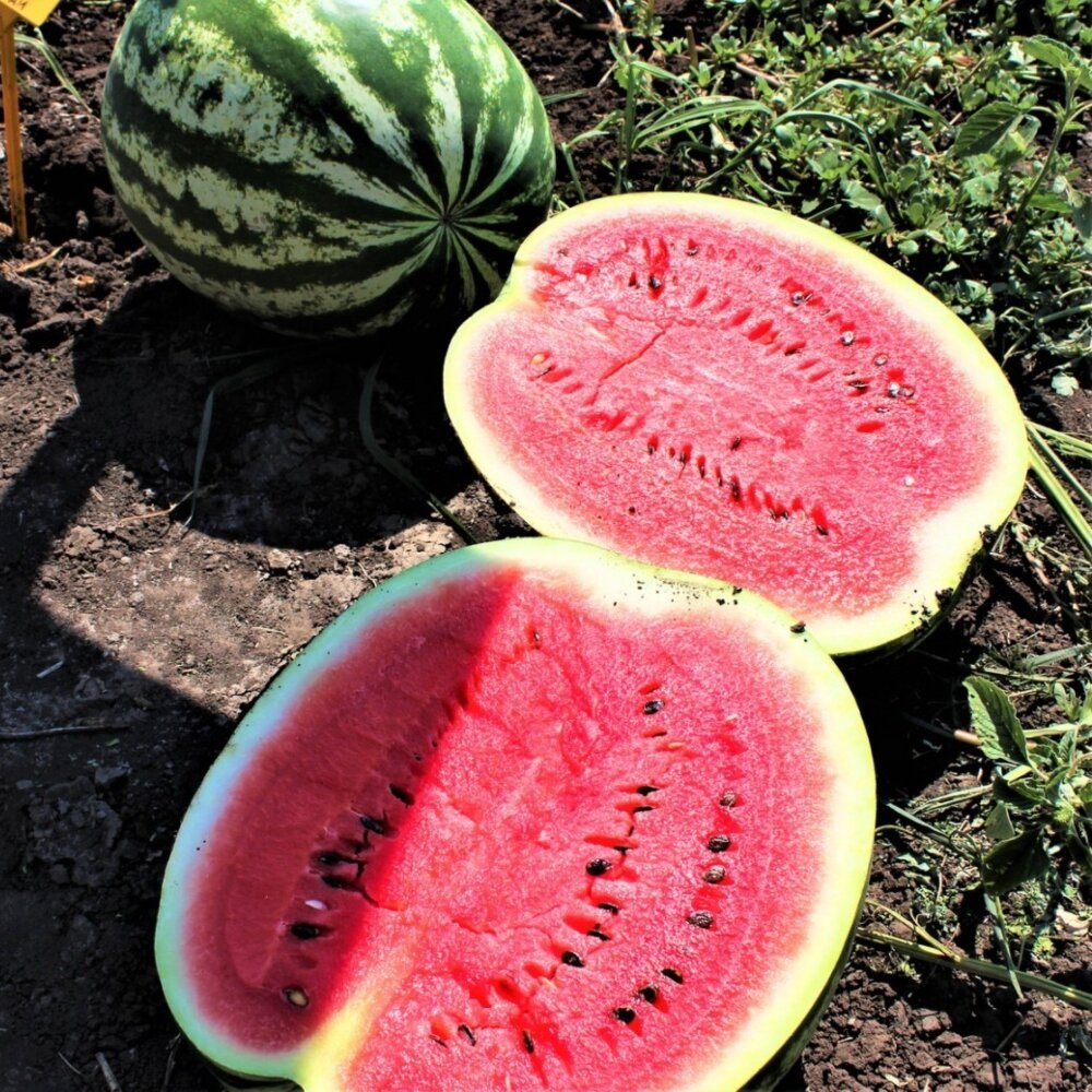 Период созревания 58-62 дня от высадки рассады Растение мощное, с крепкой корневой системой и крупными листьями. Плоды овальной формы, средней массой от 8 до 10 кг. Кора средней толщины, светло-зеленая, с темными полосами. Мякоть красная, хрустящая с высоким содержанием сахара. Гибрид неприхотлив в выращивании, пригоден для транспортировки на длинные расстояния и хранения до зимы в условиях погреба. Высокоурожаен, с каждого куста собирают до 20 килограммов плодов Рекомендуется для употребление в свежем виде.