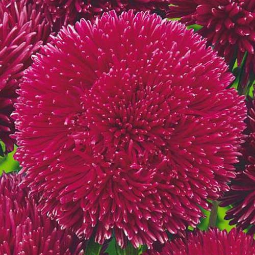 Огромные игольчато-коготковые, практически шаровидные соцветия до 14 см. Растение пирамидальной формы, высотой 65-75 см с прочными цветоносами. На одном растении формируется до 10 карминных соцветий.