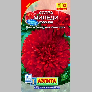 Cерия привлекательных крупноцветковых низкорослых астр. Крепкие, приземистые, хорошо кустящиеся, компактные растения высотой 35 см с густомахровыми соцветиями Ø10-12 см прекрасно смотрятся в бордюрах, балконных ящиках, горшках. Достоинствами серии Миледи являются богатая цветовая гамма, высокая устойчивость к болезням и неблагоприятным погодным условиям, а также раннее (на 2 недели раньше обычных сортов), длительное цветение.