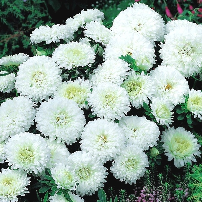 Великолепные цветы относятся к группе карликовых астр - первое место по продолжительности цветения: с июля до заморозков. Эти растения ранние, имеют кустовой тип роста, в высоту до 20 см. Диаметр соцветий до 6 см. Густомахровые цветки, восхитительной яркой окраски, прекрасно будут смотреться в контейнерах, на балконах, в кашпо, на клумбах и бордюрах.