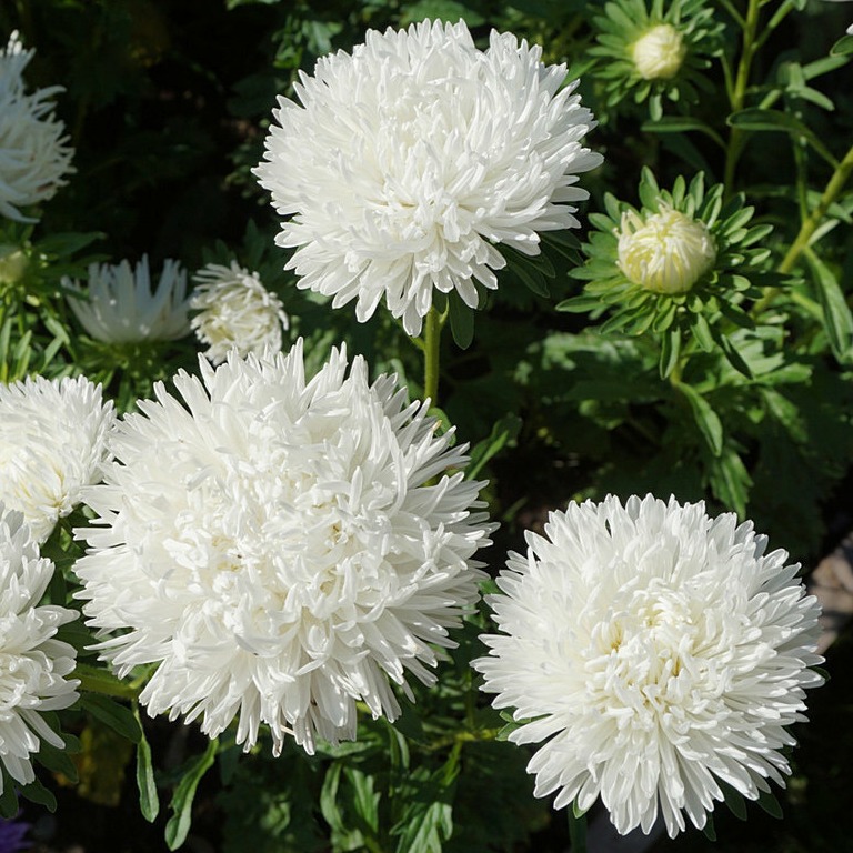 Легендарная серия астр Balloon (Воздушный шар) является абсолютным рекордсменом среди всех астр по степени махровости и плотности шаровидных соцветий. Растение пирамидальной формы, высотой 50-60 см с прочными цветоносами и крупными, пушистыми цветками диаметром 9-13 см преобразят невзрачные, пустующие места в саду, добавят ярких красок и будут радовать сочными насыщенными оттенками и воздушно-легким ароматом на протяжении длительного периода цветения. На одном кустике формируется до 6-8 соцветий нежно-белого оттенка.