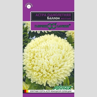 Легендарная серия астр Balloon (Воздушный шар) превосходит все известные сорта по степени махровости и плотности шаровидных соцветий. Растение пирамидальной формы, высотой 50-60 см с прочными цветоносами. На одном растении формируется до 6-8 соцветий изумительного ванильно-желтого оттенка, диаметром 9-13 см.