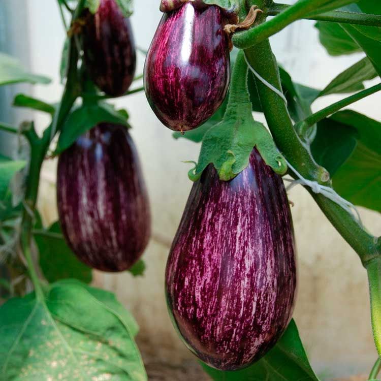 Гибрид полосатого баклажана универсального назначения. Среднеранний, созревает через 70-75 дней после высадки рассады. Растение хорошо развитое, с мощной корневой системой, полураскидистое, высотой до 90 см.  Плоды овальные, выравненные, длиной 16-18 см, вес 300-350 г. Кожица красно-фиолетовая с небольшими белыми полосами, глянцевая. Мякоть белая, с малым количеством семян, без горечи. Хорошо переносит транспортировку. Гибрид  устойчив к основным болезням. Рекомендуется  для выращивания в открытом грунте, стеклянных и пленочных теплицах.
