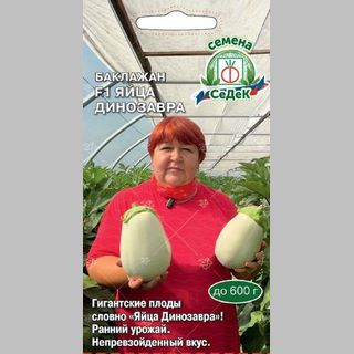 Крупноплодный гибрид раннего (105-110 дней) срока созревания для открытого и защищенного грунта. Растение высокорослое, крепкое, хорошо облиственное. Чашечка зеленая, без шипов. Плоды крупные, удлиненно-овальные, слегка грушевидные, длиной 13 см и 11 см в диаметре, гладкие, с белоснежной кожицей и нежной, но плотной белой мякотью, практически без семян, массой до 600 г. Вкус отличный, деликатесный, без горечи. Ценность гибрида: комплексная устойчивость к болезням, сочетание раннеспелости и крупноплодности, непревзойденный вкус, продолжительный период плодоношения и хранения плодов. Рекомендуется для запекания, фаршировки, консервирования, заморозки.