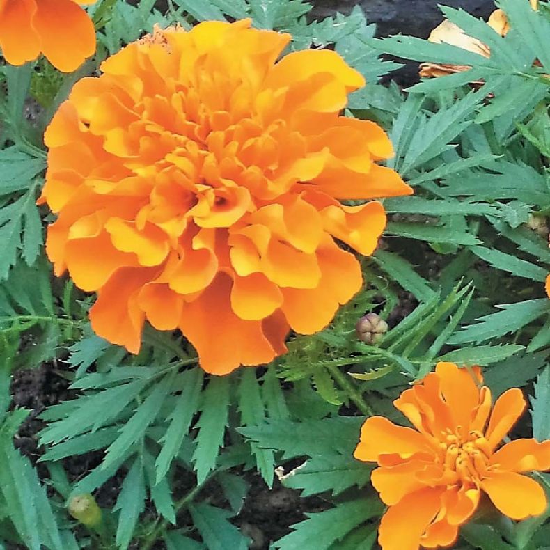 Выразительный, компактный сорт с густооблиственным кустиком высотой 30 см и махровыми соцветиями, диаметром 6 см, сочного, ярко-оранжевого оттенка. Идеально подойдет для оформления бордюров, рабаток, вазонов и балконных ящиков. Цветет с июня до заморозков. Бархатцы светолюбивы и теплолюбивы, заморозков не переносят, к почвам нетребовательны, но предпочитают плодородные легкие почвы.
