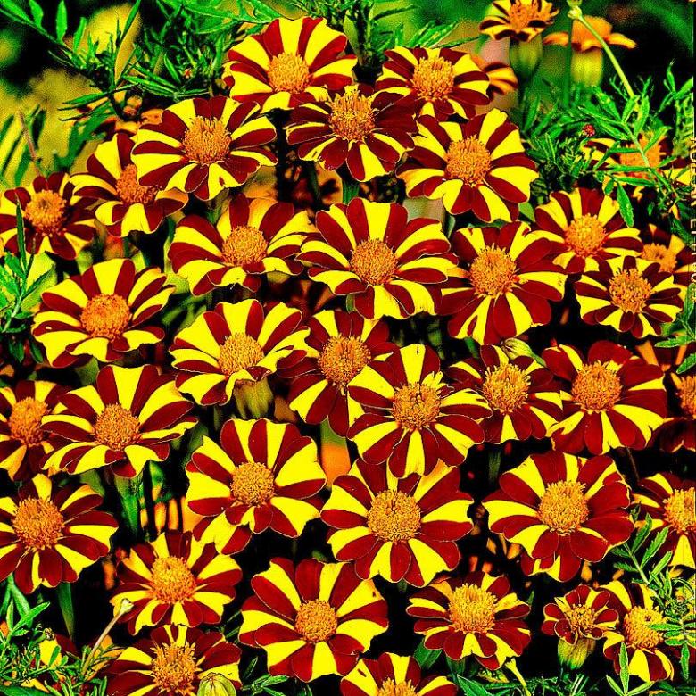Травянистое растение семейства Сложноцветные. Образует компактный густоветвящийся куст высотой 40 см. Соцветия двуцветные с чередующимися желтыми и коричневыми полосами.